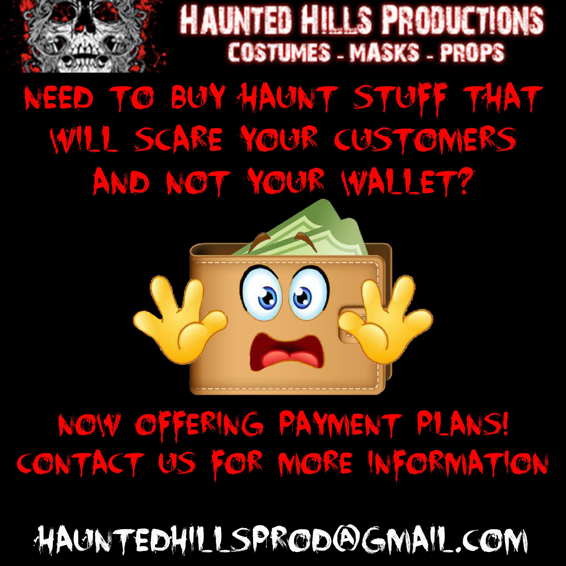 Haunted Hills Productions products are created for Haunters by Haunters. The products that we sell are designed exactly how we design for our attraction. You can rest assured that these designs are sure to get your patrons attention.